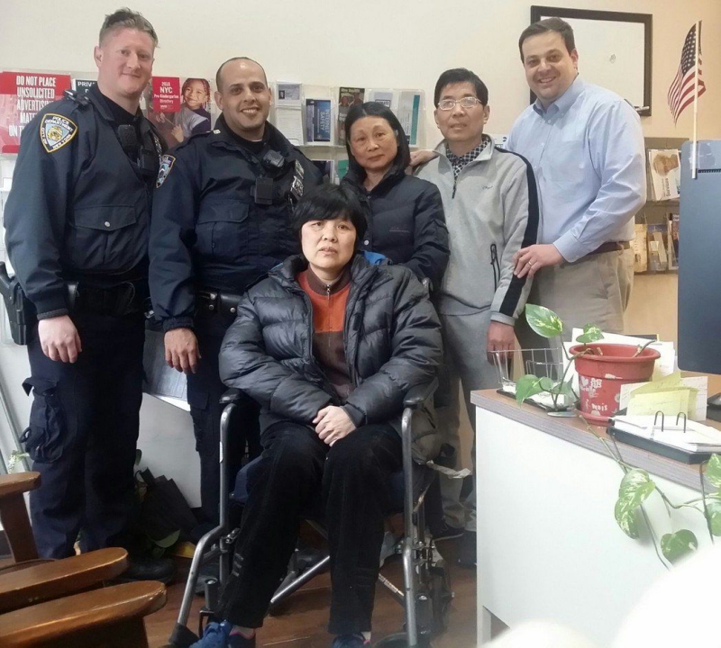 杭州的许女士日前与丈夫来纽约探望儿子,因为她曾经严重中风需要坐轮椅,于是儿子给母亲买了一辆全新的轮椅代步。不料17日下午5时左右,许女士与丈夫在布碌仑贝瑞吉外出时轮椅竟被他人盗走,导致她一时间寸步难行。所幸在州参议员高顿(Marty Golden)社区经理关国梁(John Quaglione)和两名68分局警员帮助下,一小时内就为许女士送来另一辆轮椅,让她顺利回家。