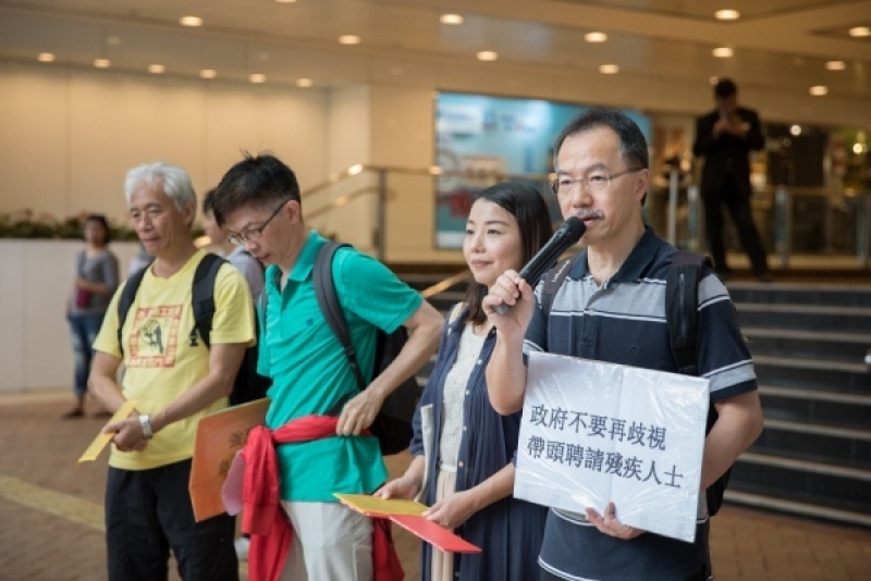 真正有能力聘请残疾人士的是香港政府,惟港府至今仍未肯承诺制定就业配额制。香港周边地区及国家,如台湾、日本、南韩,甚至大陆,都以配额制度去聘请残疾人士,经验亦相当正面,例如台湾的配额是约百分之一,企业及公营机构的达标率很高,残疾人士有相当就业机会;但香港有18万名公务员,相应的资助机构也有约18万个职位,残疾人士就业机会相当庞大,但政府不实施配额制,只称有2%雇员是残疾人士。惟我们揭发,现时该2%残疾公务员,大部分是在职时由健全变成残疾,而并非在受聘时已是残疾。