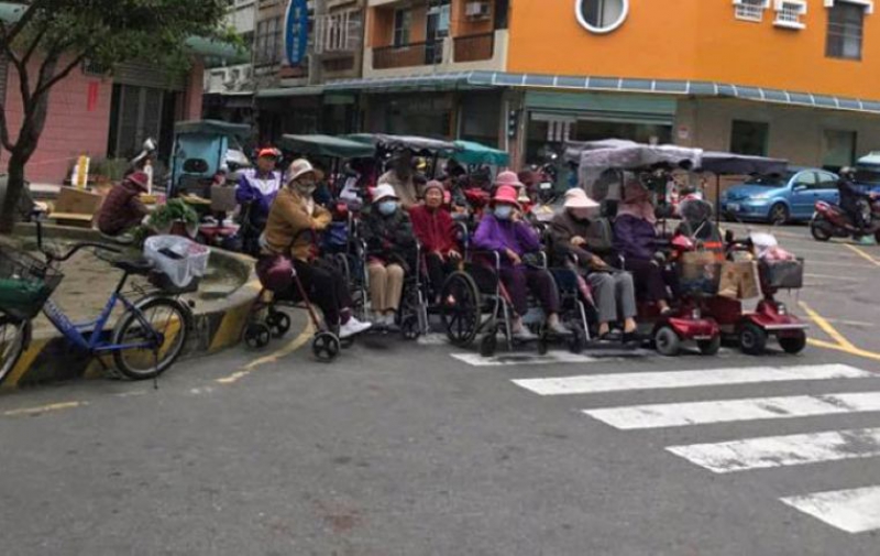 老人家坐轮椅排队 嘉义人秒懂