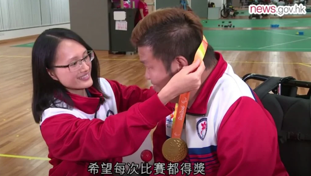 多得教练老婆不离不弃 努力实现对她承诺 硬地滚球令梁育荣找到自信,也找到认识老婆珊珊的勇气。当初他表示人手不足,邀请对方做义工,他接受政府新闻处访问,笑言自己是死缠烂打,不放弃,还大爆对方很欣赏自己:「佢话我打波好有型!」珊珊之后成为助教,协助其他残奥运动员。