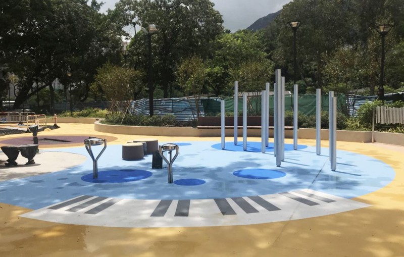 黄伟纶续称,设计团队曾到访屯门区的仁爱堂田家炳中学和匡智晨辉学校,邀请特殊学校的儿童参与设计,包括佩戴人工耳蜗的听障儿童,特别安装一组不锈钢滑梯;较低的滚筒式滑梯则为行动不便的小朋友设计。