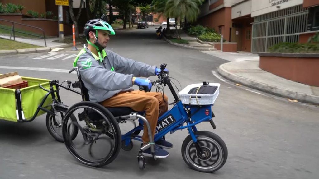 現在,哥倫比亞人擁有並運營著一種使用電動輪椅(即看上去有點像摩托車的輪椅)運行的送貨服務。