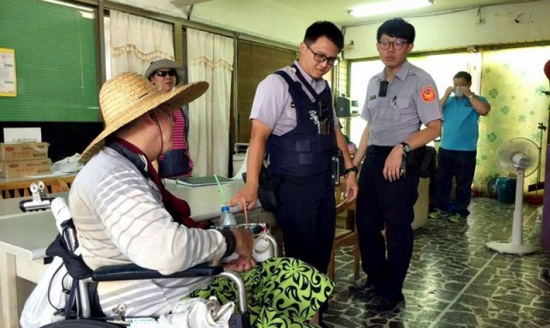 當時該老翁口中念念有詞且支支晤晤,經警方訊問其身分及住居所,老翁皆無法明確表達,唯手指向未知方位,經多次詢問後,老翁忽然拿出身上卡片〈安養中心卡片〉,員警見狀立即連繫安養中心,並輾轉聯繫上其胞弟,其胞弟表示其兄為身障人士需輪椅代步且有失智情形,但目前不方便處理,請警方代為通知計程車送回安養中心。