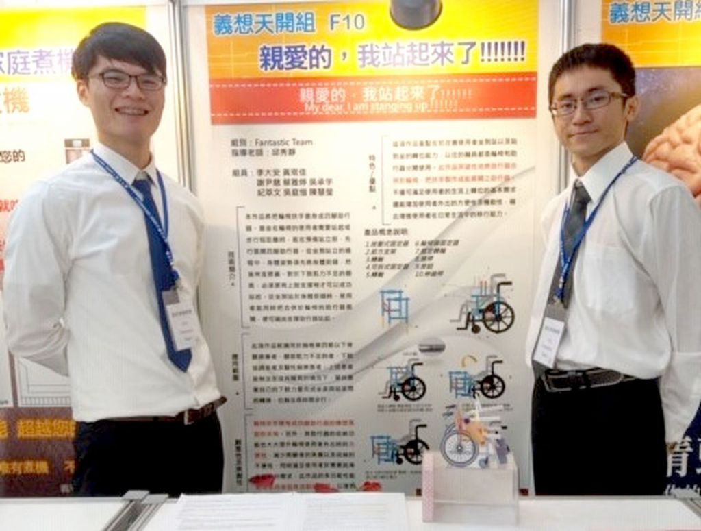李大安說,實習時他在醫療院所發現,許多輪椅族背後雖有人幫忙推車,但手裡得抱著一具行動輔具,以便起身時可以使用,但這對坐輪椅的人來說極不舒適,想站立時也很容易跌倒,促使他想替這些病患解決困擾。